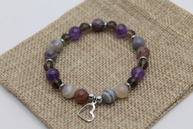 - Agate du Botswana, Améthyste, Quartz Fumé