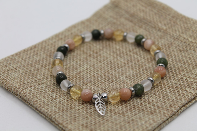 - Pierre de Lune Rose, Citrine, Cristal de Roche, Jade Vert